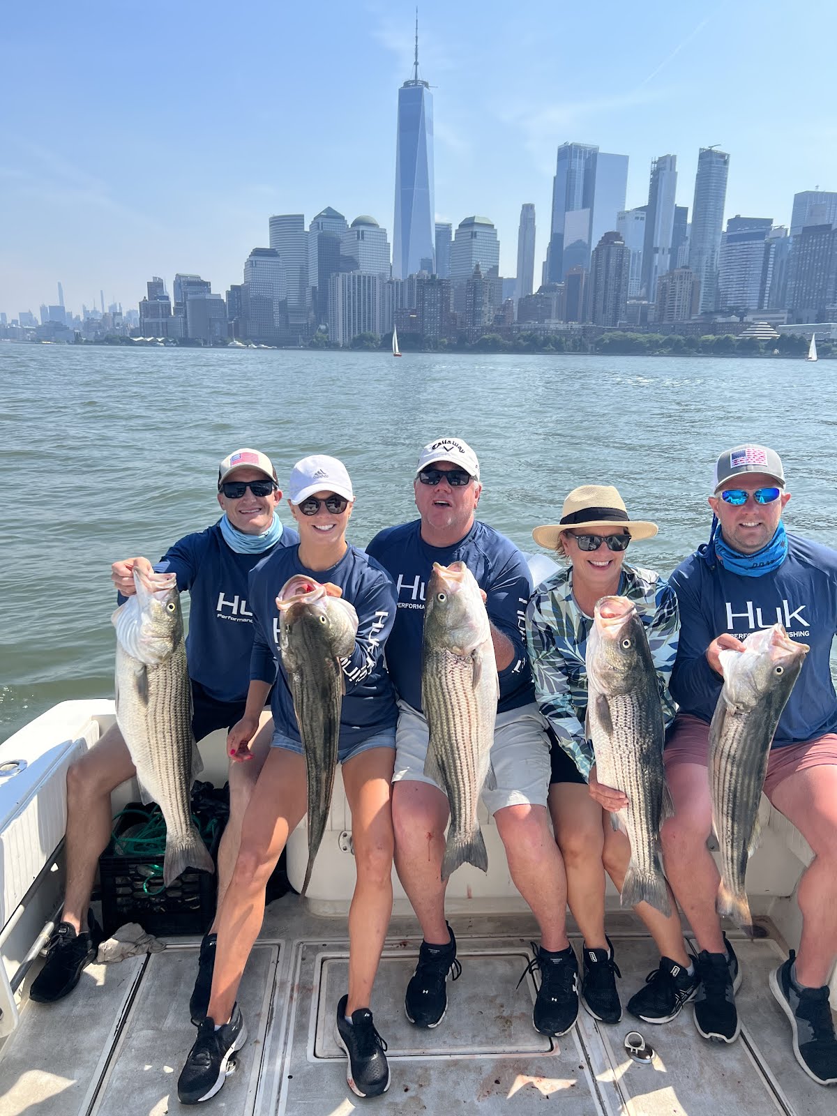 Had the Dan Hartnett family back out again. Changed Gears and took the family out for stripers. Made bait and went on the hunt. Didnt take long, got our limit on the first drift. Coolest part was first stripers for everyone on board. To top it off the family took a quick tour of the World Trade center to end the day. Now on to the Armory for lunch.