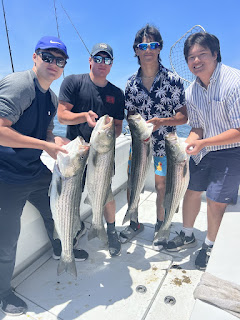Had Jack Reilly and the boys today, Big Al, Seth, and Nick. Started out on fire banging a dozen to start the day. Guys decide to make a run and look for a trophy, no takers and came back into the bay to do finish the day with more fish on bunker. Fun day with the boys!