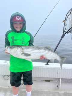 Capt Greg had Roger Sanford out this afternoon with son in laws and grandkids. Loads of bites and the primarily first time striper anglers did a nice job on the fish. Some keepers in the mix too!