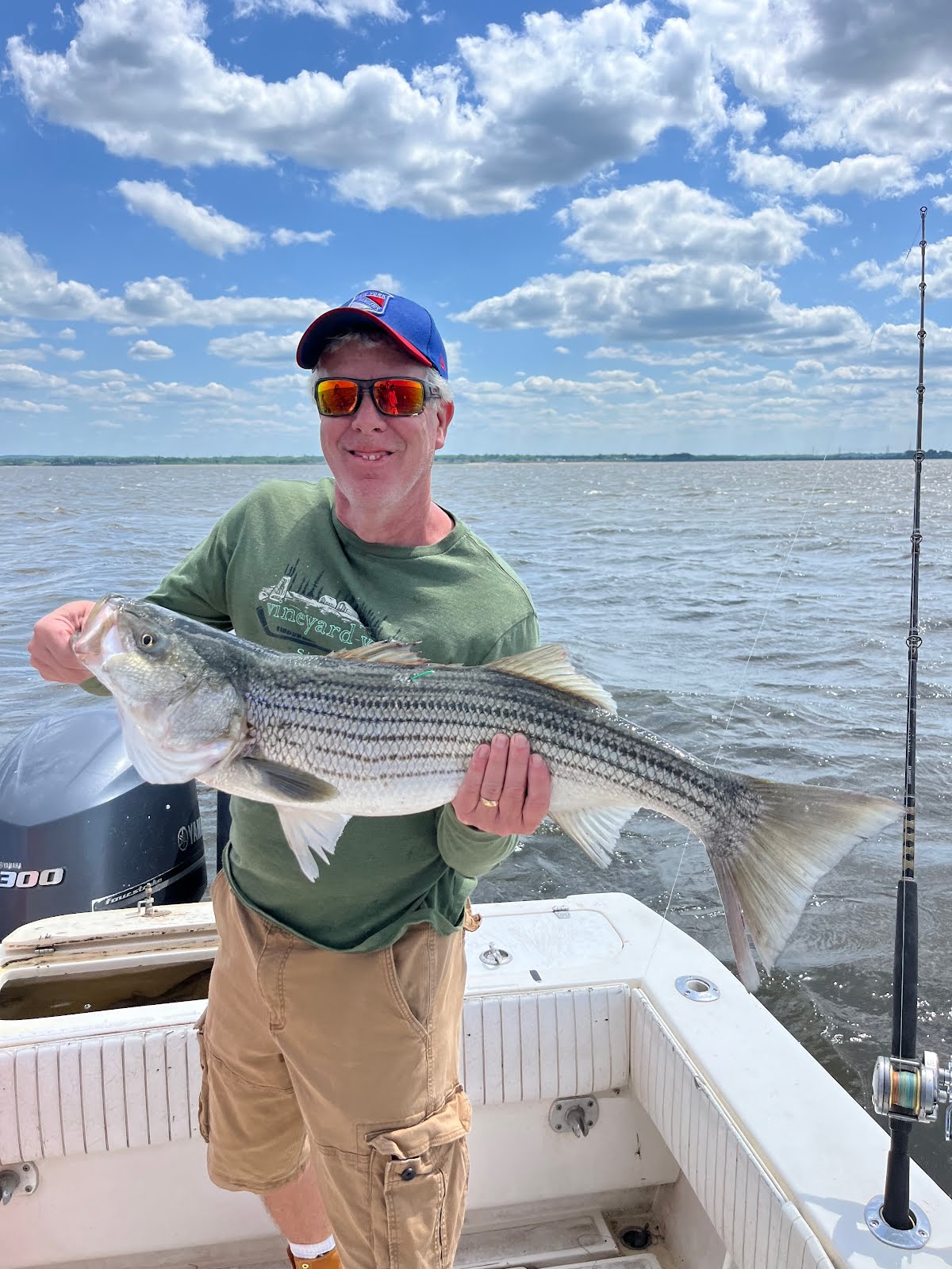 Capt Greg and Shane had Dave Hockenberry out on the 31 this morning for stripers. Started out on the bigger fish and switched it up finding some keepers in the shallow water for the guys to take home.